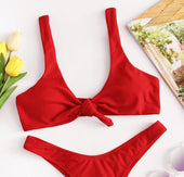 • Knot Top With High Leg Bikini Set
