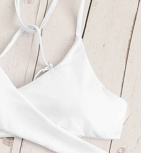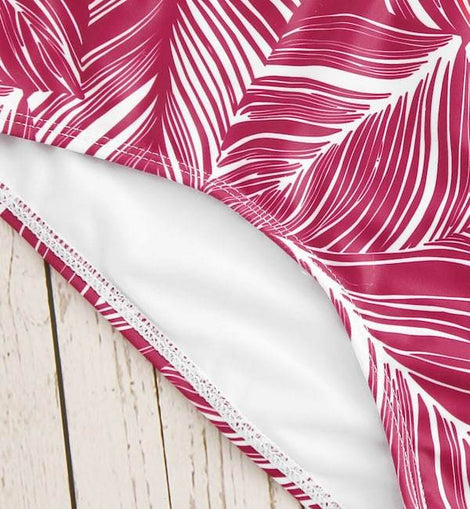 • Criss Cross Wrap Top With Leaf Print Bikini Set